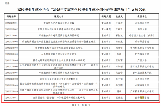 | 西安培華學(xué)院三項(xiàng)課題獲批“2025年度高校畢業(yè)生就業(yè)創(chuàng)業(yè)研究課題”立項(xiàng) |