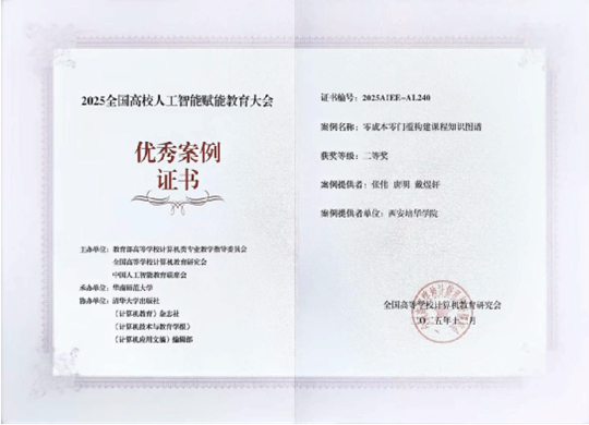 近日,2025全國高校人工智能賦能教育大會(AIEE2025)優(yōu)秀案例評選結(jié)果正式揭曉,西安培華學(xué)院教師教學(xué)發(fā)展中心主任張偉教授團隊申報的《零成本零門檻構(gòu)建課程知識圖譜》憑借鮮明的創(chuàng)新特色、扎實的實踐基礎(chǔ)和廣泛的推廣價值榮獲二等獎。該案例的獲獎不僅彰顯了學(xué)校在人工智能與教育深度融合領(lǐng)域的探索成果,更為高校數(shù)字化教學(xué)改革提供了可復(fù)制、可推廣的實踐范例。