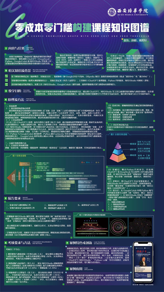 張偉教授團隊的《零成本零門檻構(gòu)建課程知識圖譜》案例,聚焦高校教學(xué)中知識碎片化、資源整合難、個性化學(xué)習(xí)支持不足等痛點,創(chuàng)新性地提出利用DeepSeek、Python、GoogleColab及NRDStudio等低成本工具,構(gòu)建從課程內(nèi)容解構(gòu)到知識圖譜可視化的全流程實踐方案,實現(xiàn)了“理論學(xué)習(xí)-工具應(yīng)用-教學(xué)實踐”的深度融合。