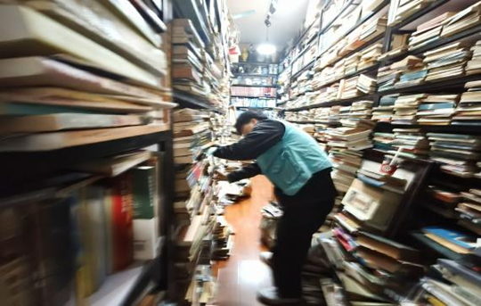 在位于小寨西路的知舊書店,20余平方米的空間內(nèi)雜亂堆疊擺放著近萬冊書籍,涵蓋文學名著、歷史典籍、哲學論著、藝術畫冊等類別,店主是一位頭發(fā)花白的老奶奶,她向團隊介紹:“開店15年,主要靠熟客推薦和口碑傳播,收書全靠居民主動上門,有時遇到品相好的絕版書,因為沒有穩(wěn)定的收購渠道,只能眼睜睜看著被外地買家收走。”團隊成員現(xiàn)場記錄了書籍破損情況,發(fā)現(xiàn)約30%的舊書存在封面磨損、內(nèi)頁泛黃、裝訂松動等問題,店主表示“缺乏專業(yè)修復工具和技術,只能簡單用膠帶粘貼,很多珍貴的老書就這樣慢慢損壞了”。