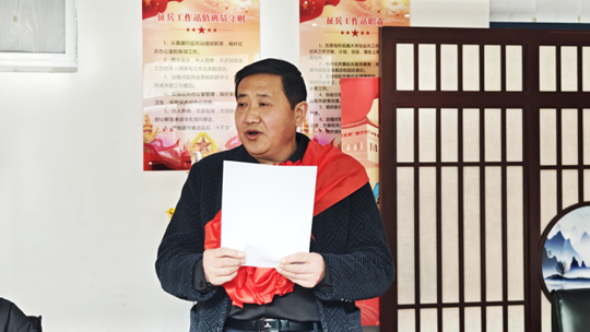 征兵站站長趙磊手持入伍通知書,以莊重的語調(diào)逐字宣讀。