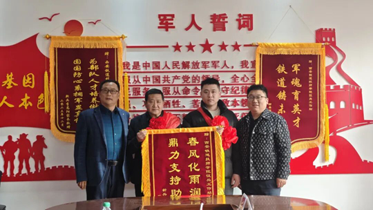 家長代表懷著感恩之心,將一面繡有“春風(fēng)化雨潤學(xué)子,鼎力支持助從軍”的錦旗贈送給學(xué)校。錦旗上的鎏金字跡,在燈光下格外耀眼,它不僅是家長對學(xué)校的致謝,更是對學(xué)!昂裰矅澜逃⒅W(xué)子參軍”理念的高度認(rèn)可,讓整場儀式充滿了家校同心、共筑國防的溫暖力量。