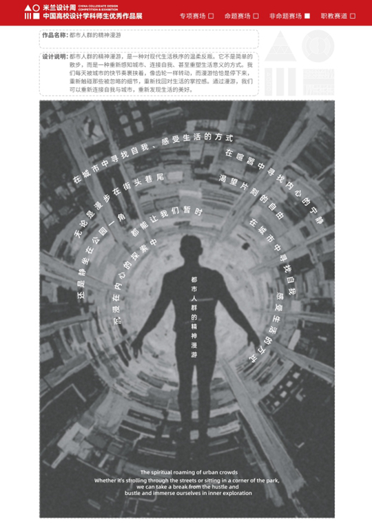 珠寶學(xué)院學(xué)生姚章楠設(shè)計的作品《都市人群的精神漫游》,通過都市人群的精神漫游,表達(dá)一種對現(xiàn)代生活秩序的溫柔“反叛”。它不是簡單的散步,而是一種重新感知城市、連接自我,甚至重塑生活意義的方式。每天被城市的快節(jié)奏裹挾著,像齒輪一樣轉(zhuǎn)動,而漫游恰恰是停下來,重新觸碰那些被忽略的細(xì)節(jié),重新找回對生活的掌控感。