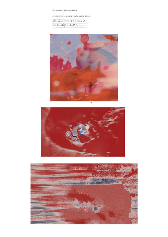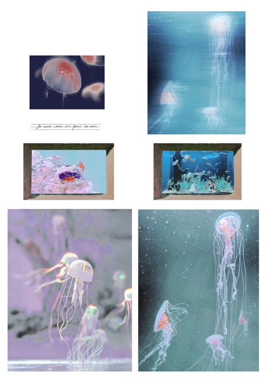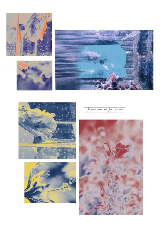 建筑學(xué)院王樂雅老師作品《汐流與腔室》以流明印刷的化學(xué)顯影模擬海洋生物的細(xì)胞膜態(tài),負(fù)片和標(biāo)本工藝的封存行為是對生物熒光消亡的逆向賦形。在意識流拼貼的圖景中,呼吁工業(yè)文明和倫理對海洋基因庫的保護(hù)。