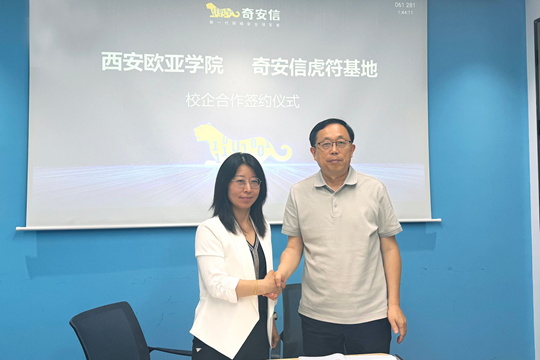 奇安信集團(tuán)副總裁程國(guó)章與西安歐亞學(xué)院副校長(zhǎng)張樂(lè)芳共同簽署戰(zhàn)略合作協(xié)議