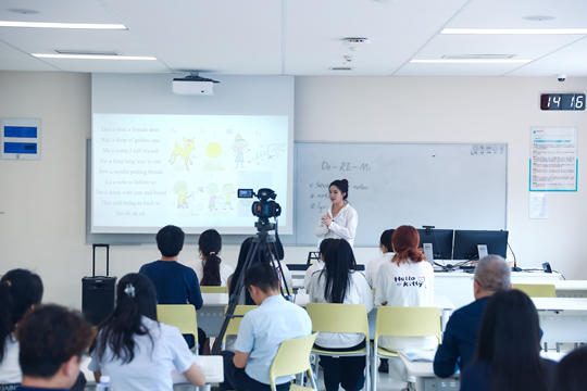 英語專業(yè)的同學(xué)則基于2024人教版小學(xué)英語新教材,嘗試將英語+音樂/科學(xué)/中國文化/勞動進(jìn)行跨學(xué)科融合,重新整體設(shè)計了兒童英語單元,并進(jìn)行微型課試講。33位來自一線中小學(xué)的嘉賓評委針對6個微型課進(jìn)行了細(xì)致的點評和反饋。來自西安市高新區(qū)第六學(xué)校的史老師認(rèn)為這幾節(jié)課有趣又有效,盡顯英語教學(xué)的靈動與溫度。另一位一線教師則對于兒童英語課堂的舒適區(qū)與創(chuàng)新提出了自己的思考,引導(dǎo)同學(xué)們進(jìn)行更多的嘗試。