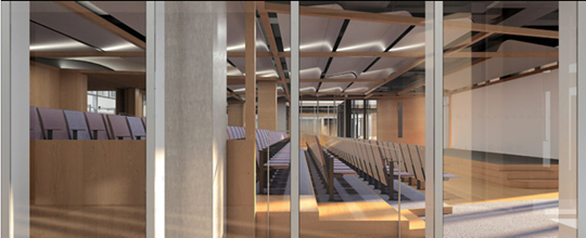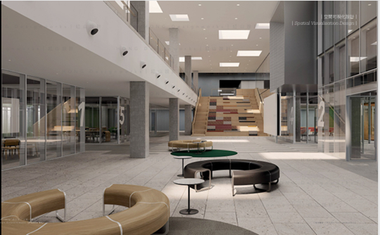 兩層裙樓中設(shè)有公共中庭、大階梯等裝置