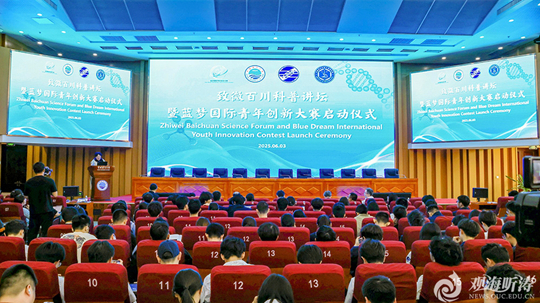 當日下午,致微百川科普講壇暨藍夢國際青年創(chuàng)新大賽啟動儀式在嶗山校區(qū)海洋科技大樓報告廳舉行。海德學院院長汪岷主持開幕式。
