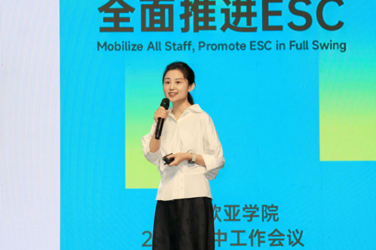 董事長胡建波教授在《煥發(fā)全員活力,全面推進ESC》主題報告中,以南京紅山動物園的故事引入“關(guān)愛生命,敬畏自然”的價值理念,分析了理念變革如何重塑行業(yè)規(guī)則,并由此引申至教育領(lǐng)域。他強調(diào),西安歐亞學(xué)院應(yīng)始終堅持“以雇主為導(dǎo)向 以學(xué)生為中心”的核心價值,以長期主義和利他主義為指引,培養(yǎng)具有創(chuàng)造力與社會擔(dān)當(dāng)?shù)膽?yīng)用型人才。