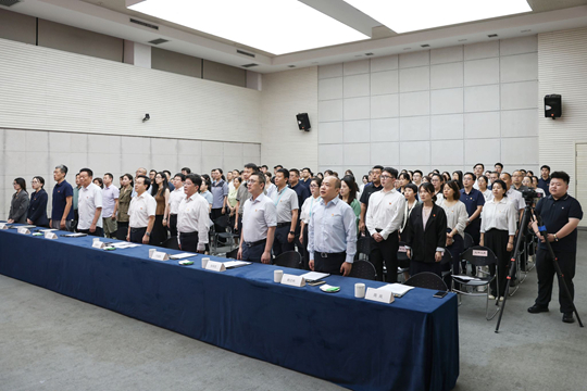 大會(huì)在莊嚴(yán)的《國(guó)歌》聲中拉開(kāi)帷幕,激昂旋律奏響奮進(jìn)序曲,鮮紅黨旗映照赤誠(chéng)初心,全體與會(huì)人員在莊嚴(yán)肅穆的氛圍中,重溫紅色記憶,凝聚前行力量。