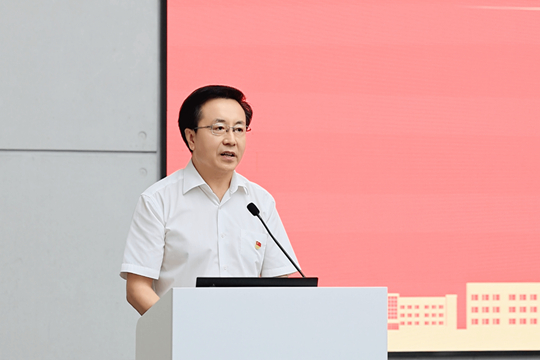 趙國(guó)華在講話中,向受表彰的集體與個(gè)人致以祝賀,回顧黨的奮斗歷程與學(xué)校黨建成果,并從五個(gè)方面部署工作。他強(qiáng)調(diào),立足新時(shí)代,奮進(jìn)新征程,以黨建為引領(lǐng),讓旗幟更紅、根基更牢:一要把黨建優(yōu)勢(shì)轉(zhuǎn)化為發(fā)展優(yōu)勢(shì),讓活力變動(dòng)能、成果促效能,以高質(zhì)量黨建賦能高質(zhì)量發(fā)展;二要弘揚(yáng)偉大建黨精神,讓堡壘更堅(jiān)固、先鋒更閃耀,讓紅色基因在育人中傳承、在創(chuàng)新中生輝;三要強(qiáng)化頭雁領(lǐng)航與榜樣帶動(dòng),讓“雙帶頭人”顯擔(dān)當(dāng)、獲獎(jiǎng)?wù)咦魇痉,以典型力量聚奮進(jìn)合力;四要放大黨建品牌輻射效應(yīng),讓標(biāo)桿立得穩(wěn)、特色亮得出,推動(dòng)黨的建設(shè)從“標(biāo)桿引領(lǐng)”到“全面提質(zhì)”;五要以黨建“強(qiáng)引擎”驅(qū)動(dòng)學(xué)校向中國(guó)一流國(guó)際化應(yīng)用型本科高校加速邁進(jìn),在教育強(qiáng)國(guó)強(qiáng)省建設(shè)中,寫(xiě)就“黨建紅引領(lǐng)教育興,歐亞人建功新時(shí)代”的嶄新篇章。