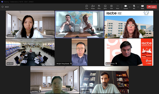 就在來訪前兩天(7月30日),Joinco公司促成了廣州城市理工學院與葡萄牙里斯本大學學院(ISCTE)的三方線上會議。此次來訪正是Joinco公司對該會議的快速響應和具體落實。該線上會議由Joinco公司CEO Pedro Cunha主持,ISCTE副校長Helena Carreiras(前葡萄牙國防部部長)、商學院副院長Renato Pereira,以及廣州城市理工學院國際商學院院長安然、專業(yè)帶頭人和承擔國際商務談判課程的青年教師共同參與。三方重點圍繞國際交換生項目、學生實習實踐、產學研深度融合等議題展開深入討論,并就建立常態(tài)化合作機制達成初步共識。值得一提的是,國際商學院楊明暉教授作為ISCTE的優(yōu)秀校友,在合作中發(fā)揮重要的橋梁紐帶作用。