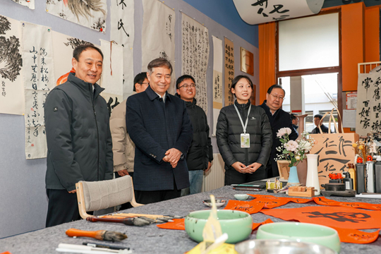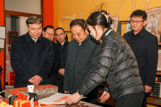 1月9日,山東省魯信投資控股集團(tuán)有限公司黨委副書(shū)記、山東省魯信公益基金會(huì)理事長(zhǎng)范宗杰帶隊(duì),集團(tuán)首席經(jīng)理、黨委宣傳部部長(zhǎng)、魯信公益基金會(huì)副理事長(zhǎng)兼秘書(shū)長(zhǎng)柴大秋,魯信創(chuàng)業(yè)投資集團(tuán)股份有限公司黨委副書(shū)記、董事、魯信公益基金會(huì)理事潘利泉等調(diào)研團(tuán)隊(duì),會(huì)同山東輕工職業(yè)學(xué)院黨委書(shū)記范桂君一行,在泰安市市政府副秘書(shū)長(zhǎng)侯召席,市文化和旅游局黨組書(shū)記、局長(zhǎng)李洪洲,黨組副書(shū)記、副局長(zhǎng)高文嵩,泰山區(qū)政府黨組成員、副區(qū)長(zhǎng)李進(jìn),區(qū)文化和旅游局黨組書(shū)記、局長(zhǎng)張麗等陪同下,蒞臨泰山科技學(xué)院,專題調(diào)研學(xué)校山東省非物質(zhì)文化遺產(chǎn)研究基地、泰安市非物質(zhì)文化遺產(chǎn)傳承教育實(shí)踐基地建設(shè)與育人工作開(kāi)展情況。學(xué)校黨委委員、常務(wù)副校長(zhǎng)謝承紅,非遺中心主任趙國(guó)靖陪同調(diào)研。