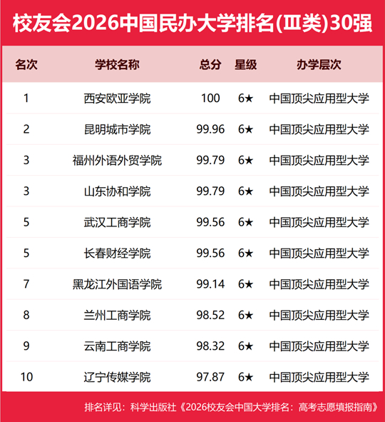 校友會(huì)2026中國(guó)民辦大學(xué)排名Ⅲ類(部分)