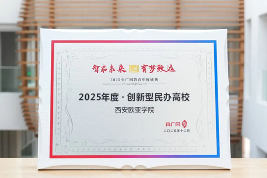 另外,在2025年12月26日舉辦的央廣網(wǎng)教育年度盛典上,西安歐亞學(xué)院獲頒“2025年度創(chuàng)新型民辦高!狈Q號(hào),這是對(duì)學(xué)校長(zhǎng)期以來堅(jiān)持在地國(guó)際化高質(zhì)量發(fā)展、深化產(chǎn)教融合推進(jìn)校企協(xié)同育人的辦學(xué)成果的高度肯定。