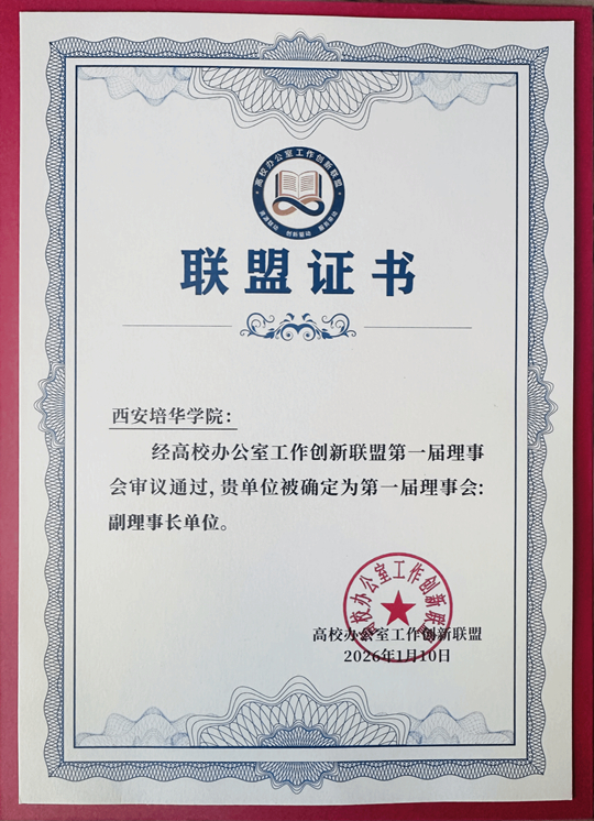 | 西安培華學(xué)院學(xué)校辦公室入選“高校辦公室工作創(chuàng)新聯(lián)盟”副理事長單位 |