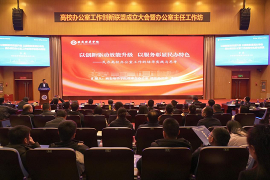 1月10日,高校辦公室工作創(chuàng)新聯(lián)盟成立大會暨辦公室主任工作坊在西南石油大學(xué)成都校區(qū)舉辦。來自全國31個。▍^(qū)、市)高校辦公室的300余名負(fù)責(zé)人和業(yè)務(wù)骨干代表參加成立大會。西安培華學(xué)院學(xué)校辦公室入選“高校辦公室工作創(chuàng)新聯(lián)盟”副理事長單位,理事會辦公室、校長辦公室主任李健參加會議并在“工作坊”環(huán)節(jié)作主旨報告。