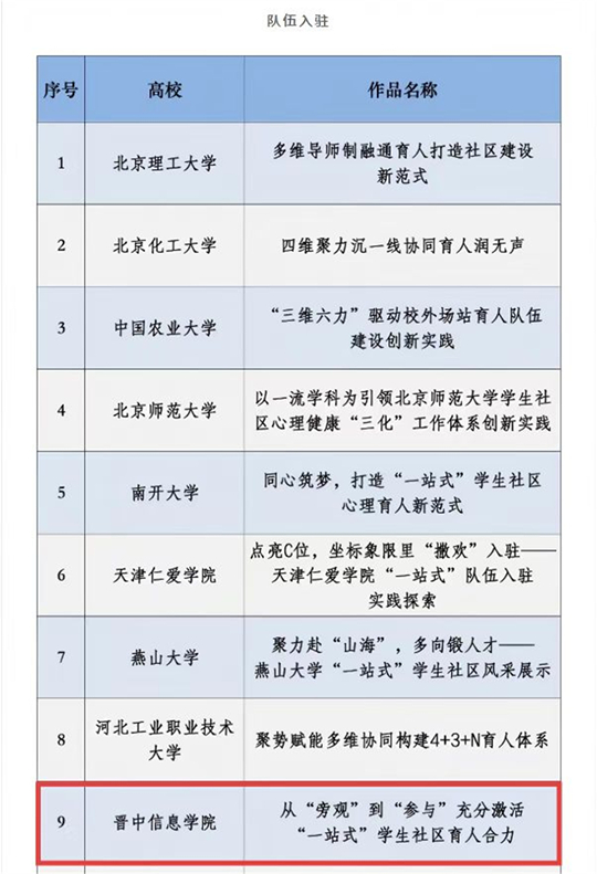 晉中信息學院入選全國高校示范“一站式”學生社區(qū)