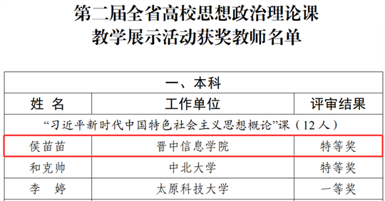 喜報!晉中信院思政課教師在第二屆全省高校思想政治理論課教學展示活動中斬獲佳