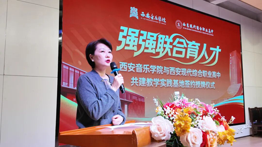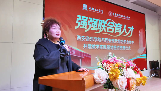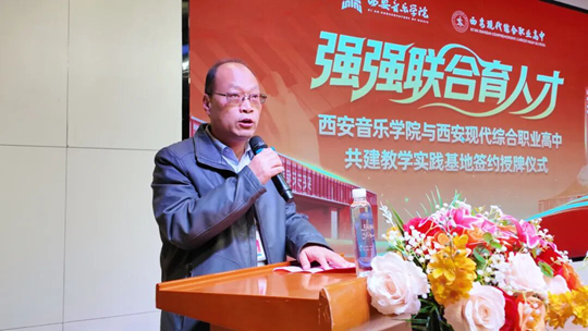 儀式由西安現(xiàn)代綜合職業(yè)高中黨支部副書記、副校長任軍主持。學校執(zhí)行校長馬俊倉首先致歡迎詞,對西安音樂學院一行的到來表示熱烈歡迎。