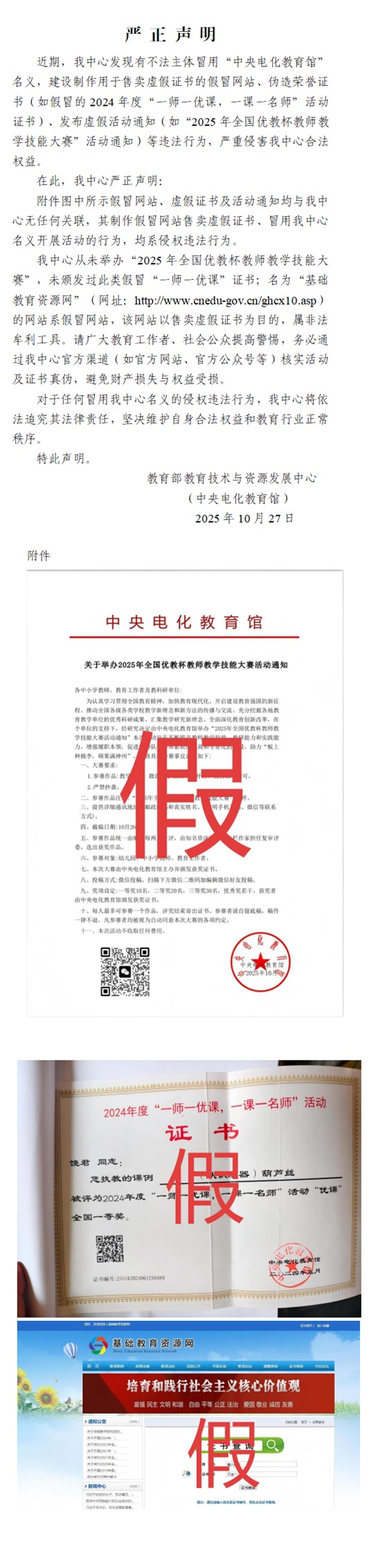 這些網(wǎng)站和證書是假的!教育部資源中心嚴(yán)正聲明→