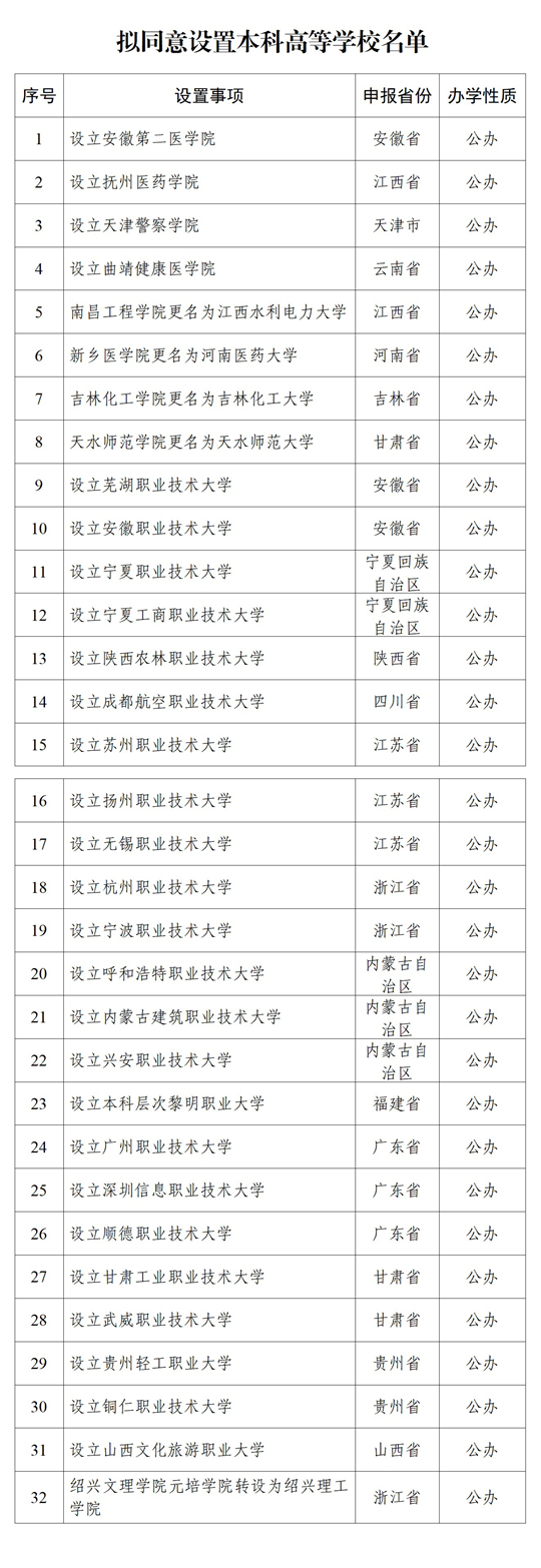 附件:擬同意設(shè)置本科高等學(xué)校名單(點(diǎn)擊查看)