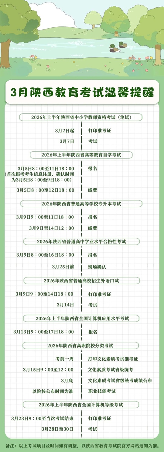 3月︱陜西教育考試溫馨提醒