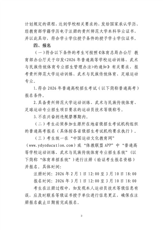 貴州師范大學(xué)2026年運(yùn)動訓(xùn)練、武術(shù)與民族傳統(tǒng)體育、足球運(yùn)動專業(yè)招生簡章