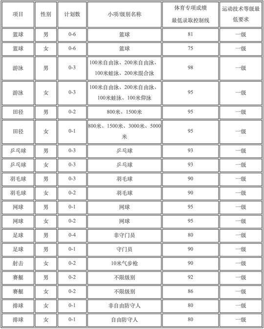 (一)考生的體育專項考試成績不得低于各招生項目(部分項目分男女)的體育專項成績最低錄取控制線。