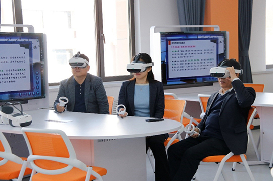 隨后,大家參觀了語言研究實驗中心,考察體驗了二語習得跨學科研究實驗室、虛擬現實實驗室、模擬聯合國實驗室等。