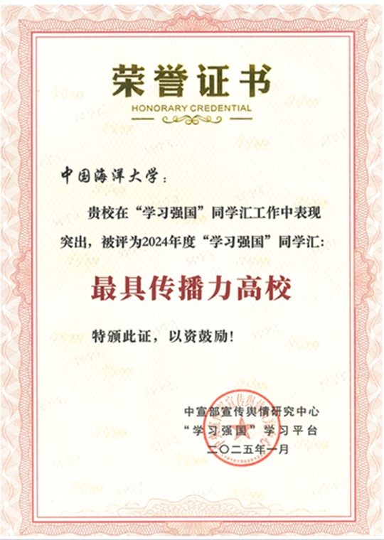 | 中國海洋大學獲評“學習強國”學習平臺“最具傳播力高! |