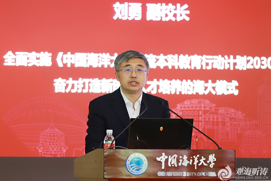 劉勇作了題為“全面實施《中國海洋大學(xué)一流本科教育行動計劃2030》奮力打造新時代人才培養(yǎng)的海大模式”的工作報告,詳細(xì)解讀《中國海洋大學(xué)一流本科教育行動2030》,并結(jié)合評估整改布置了下一階段的重點工作。他指出,習(xí)近平總書記給學(xué)校全體師生的重要回信,為學(xué)校人才培養(yǎng)工作提供了根本遵循,要堅持以學(xué)生為中心,辦特色顯著、世界一流的本科教育,辦全球最好的海洋本科教育;要以培養(yǎng)胸懷藍(lán)色夢想、堪當(dāng)時代重任的優(yōu)秀海洋人才為使命,為強國建設(shè)、民族復(fù)興偉業(yè)提供人才支撐。