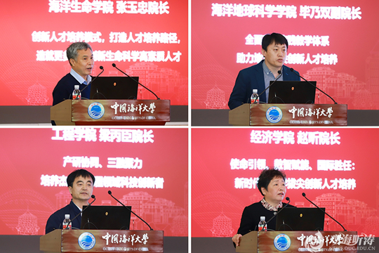 會上,海洋生命學(xué)院院長張玉忠、海洋地球?qū)W院副院長畢乃雙、工程學(xué)院院長梁丙臣、經(jīng)濟(jì)學(xué)院院長趙昕分別作題為“創(chuàng)新人才培養(yǎng)模式,打造人才培養(yǎng)路徑,造就更多藍(lán)夢創(chuàng)新生命科學(xué)高素質(zhì)人才”“全面升級實踐教學(xué)體系,助力地學(xué)拔尖創(chuàng)新人才培養(yǎng)”“ 產(chǎn)研協(xié)同、三融聚力,培養(yǎng)杰出的工程領(lǐng)域科技創(chuàng)新者”“使命引領(lǐng)、數(shù)智賦能、國際勝任:新時代經(jīng)濟(jì)學(xué)拔尖創(chuàng)新人才培養(yǎng)”的主題報告。