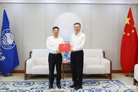 張峻峰向周云杰(左)頒發(fā)中國海洋大學(xué)研究生合作指導(dǎo)教師聘書
