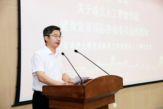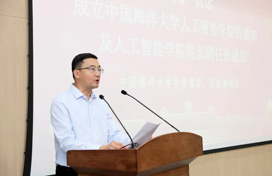 蔣秋飚宣讀了成立中國(guó)海洋大學(xué)人工智能學(xué)院的通知及人工智能學(xué)院院長(zhǎng)聘任的通知。