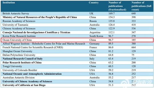 | 中國海洋大學(xué)發(fā)表南極研究論文數(shù)量位居全球高校第二 |