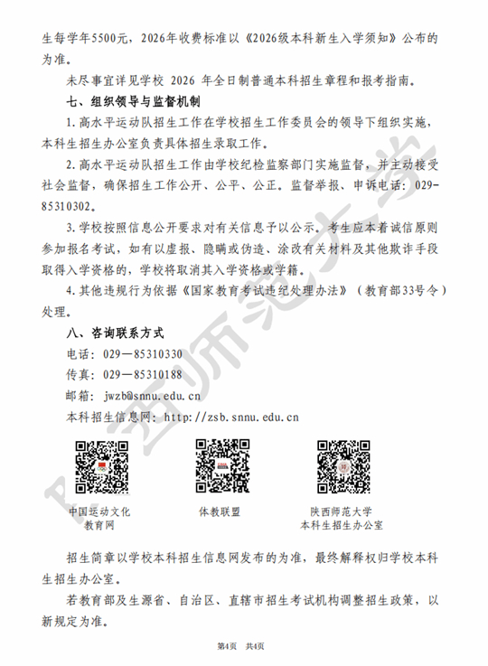 陜西師范大學2026年高水平運動隊招生簡章