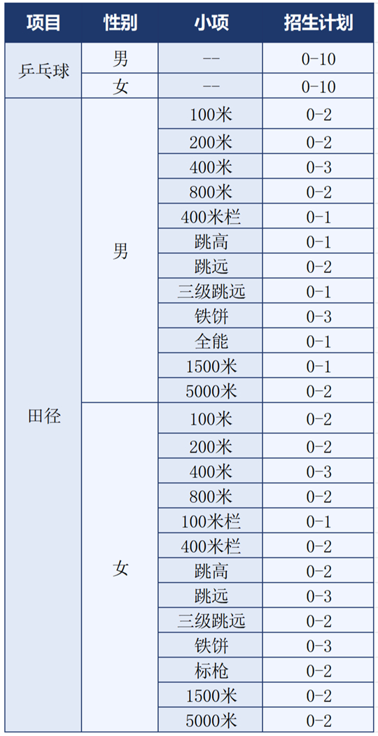 根據(jù)《教育部辦公廳關(guān)于做好2026年普通高等學(xué)校部分特殊類型招生工作的通知》(教學(xué)廳〔2025〕7號(hào))等文件精神,結(jié)合我校高水平運(yùn)動(dòng)隊(duì)建設(shè)規(guī)劃,2026年我校繼續(xù)開(kāi)展高水平運(yùn)動(dòng)隊(duì)招生工作。