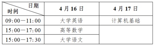 我省2026年普通高校專升本考試于2026年4月16日、17日統(tǒng)一組織進行。各科目考試時間(北京時間)安排如下: