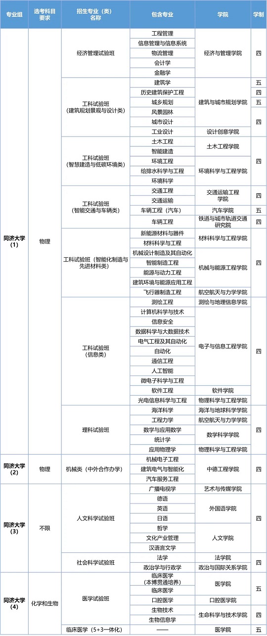 附件:同濟大學(xué)綜合評價批次招生院校專業(yè)組及科目要求