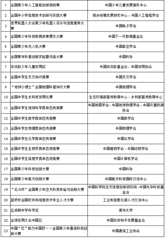 (1)自然科學素養(yǎng)類:高中階段在以下競賽中獲得過省級三等獎(含)以上者。