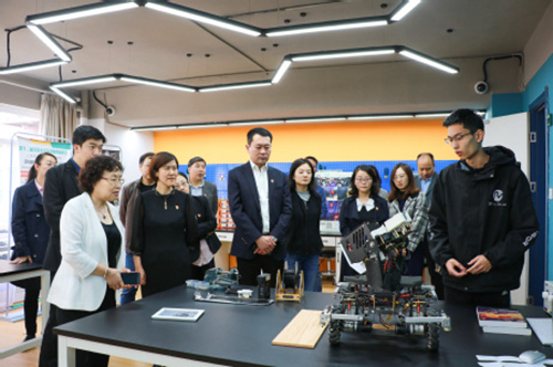 李妍對曲德強一行的來訪表示熱烈歡迎,并致以誠摯的問候和美好的祝愿。她表示,中英國際學(xué)院沿襲“德文醫(yī)工學(xué)堂”百年文脈,傳承學(xué)校工科教育典范,融合中西優(yōu)質(zhì)教育資源。學(xué)院始終堅持把“責(zé)任領(lǐng)導(dǎo)力”、“創(chuàng)業(yè)與創(chuàng)新”和“文化同理”三大理念貫穿立德樹人全過程,融入教書育人各環(huán)節(jié);通過舉辦“讓科學(xué)研究的春風(fēng)吹進復(fù)興園”講座、建設(shè)創(chuàng)新領(lǐng)導(dǎo)力中心以及引入STEM(科學(xué)、技術(shù)、工程和數(shù)學(xué)教育)課程,為師生創(chuàng)造良好的科研與創(chuàng)新創(chuàng)業(yè)氛圍,推進人才培養(yǎng)的平臺更寬,載體更深。