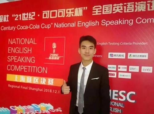 舒晨參加“21世紀(jì) · 可口可樂杯”全國英語演講比賽榮獲上海賽區(qū)二等獎