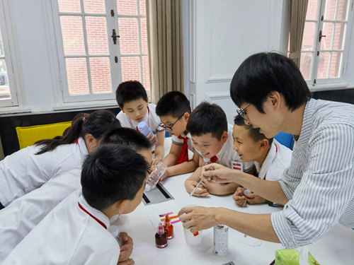 7月16日,上海理工大學(xué)中英國(guó)際學(xué)院上海市學(xué)生(青少年)科創(chuàng)教育基地舉辦小學(xué)生暑期研學(xué)活動(dòng),復(fù)旦大學(xué)第二附屬學(xué)校四年級(jí)的同學(xué)們參加活動(dòng)。研學(xué)活動(dòng)圍繞上海理工大學(xué)的深厚歷史底蘊(yùn)與中英國(guó)際學(xué)院科技創(chuàng)新成果展開,分為“復(fù)興紅色校史研學(xué)”“機(jī)器人互動(dòng)體驗(yàn)研學(xué)”和“神奇彩色墨水體驗(yàn)研學(xué)”三個(gè)版塊進(jìn)行互動(dòng)式體驗(yàn)和學(xué)習(xí)。