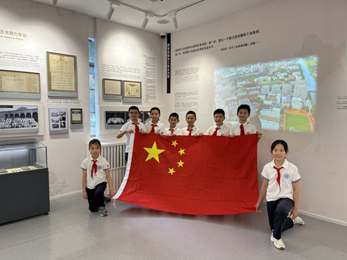 根植愛國(guó)精神,激發(fā)報(bào)國(guó)情懷。“復(fù)興紅色校史研學(xué)”在上海理工大學(xué)復(fù)興校區(qū)校史館展開,這也是復(fù)興校區(qū)校史館開館后迎來的一批年齡最小的客人。大學(xué)生黨員講解員帶領(lǐng)小朋友們參觀校史館,引導(dǎo)小朋友學(xué)黨史、研國(guó)史,牢固樹立愛國(guó)主義信念,讓愛國(guó)種子在他們心中生根萌芽、茁壯成長(zhǎng)。講解員結(jié)合場(chǎng)館展品講述先輩故事,以沉浸式體驗(yàn)的形式開展愛國(guó)主義教育,讓報(bào)效祖國(guó)成為鮮明的價(jià)值導(dǎo)向,激發(fā)新時(shí)代少年的報(bào)國(guó)情懷。參觀結(jié)束后,小朋友們紛紛在寄語(yǔ)板上寫下對(duì)祖國(guó)的熱愛和對(duì)未來的無限憧憬。