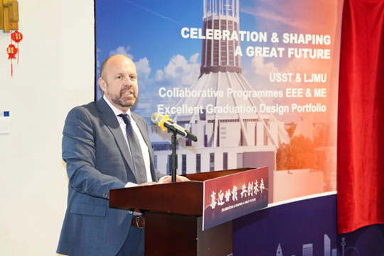 倪克·斯莫在發(fā)言中對學(xué)校的熱情接待表示衷心感謝,并回顧上海與利物浦締結(jié)姐妹城市26周年來的合作成果。他表示,15年前利物浦參加上海世博會,彰顯了兩市的深厚友誼和緊密合作。展望未來,他期待進(jìn)一步拓展中英兩國高校合作、科研共建及高層次合作辦學(xué)項(xiàng)目,推動中英合作辦學(xué)高質(zhì)量發(fā)展,進(jìn)一步加深中英兩國文化理解與交流,并持續(xù)深化合作,助力上海市與利物浦市務(wù)實(shí)合作不斷提質(zhì)升級。