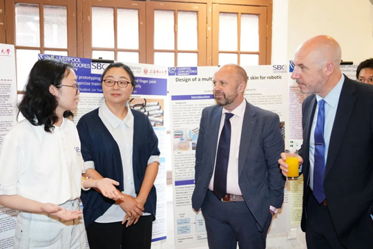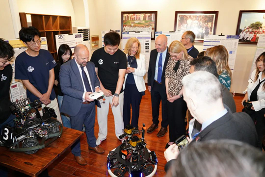 在互動交流環(huán)節(jié),中英國際學(xué)院工程與計算學(xué)院的師生們展示了精心挑選的優(yōu)秀工科專業(yè)畢業(yè)設(shè)計海報,這些海報主題新穎、創(chuàng)意十足。學(xué)院兩個工科專業(yè)的學(xué)生們向倪克·斯莫一行詳細(xì)介紹了畢業(yè)設(shè)計情況和學(xué)習(xí)成果。RoboVigor機(jī)器人學(xué)生賽隊(duì)演示了賽隊(duì)自主組裝、研發(fā)的機(jī)器人,并介紹了賽隊(duì)成長歷程和所獲榮譽(yù)。倪克·斯莫一行對中英國際學(xué)院充分利用國際化教育資源優(yōu)勢,培養(yǎng)出一批掌握扎實(shí)工科專業(yè)知識且具備國際視野、創(chuàng)新意識、實(shí)踐能力和跨文化溝通能力的復(fù)合型工程人才給予了高度肯定。
