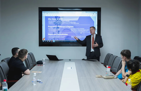 商科專業(yè)負責人王軻(Jeffrey Wang)博士分析了國際局勢下的商業(yè)發(fā)展趨勢,探討了國際市場對商品價值的重定義與定位,以及跨文化環(huán)境中的機遇與挑戰(zhàn)。講師帕斯卡爾•朔克(Pascal Schock)聚焦全球化下的國際商業(yè)關(guān)系,強調(diào)了重視文化差異和商業(yè)習慣差異的重要性。工商管理專業(yè)負責人托尼•瑞安(Tony Ryan)博士介紹了學院的來華留學生本科項目、課程及獎學金政策。他表示中英國際學院憑借國際認可的課程內(nèi)容、教學模式以及人才培養(yǎng)質(zhì)量,吸引了眾多優(yōu)秀國際學生前來交流學習。