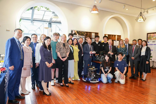 活動中,校長朱新遠和倪克•斯莫共同為紀念兩校合作辦學19周年的展板揭幕。學院兩個工科專業(yè)的學生們詳細介紹了畢業(yè)設(shè)計情況和學習成果,RoboVigor機器人賽隊成員演示了賽隊自主組裝、研發(fā)的機器人。