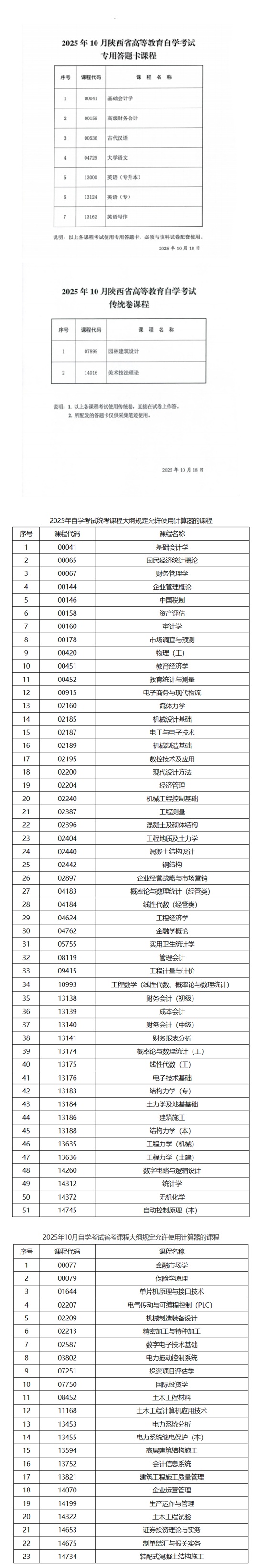 2025年10月陜西省自學(xué)考試專用答題卡等課程信息公布